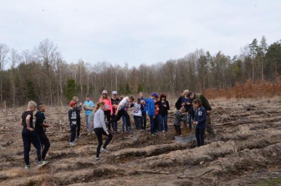 Do wspólnego sadzenia lasu leśnicy z Nadleśnictwa Kobiór zaprosili uczniów i nauczycieli ze Szkoły Podstawowej im. J. Brzechwy w Kobiórze, którzy 11 kwietnia br. włączyli się w ogólnopolską kampanię „1000 drzew na minutę”.