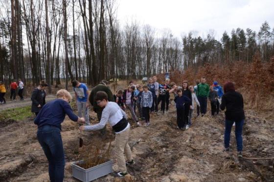 Następnie doskonale przygotowana merytorycznie grupa udała się do leśnictwa Mościcka, gdzie czekała już wyznaczona pod odnowienie powierzchnia. Pod okiem leśniczego Sławomira Świerczka posadzili sadzonki buku.